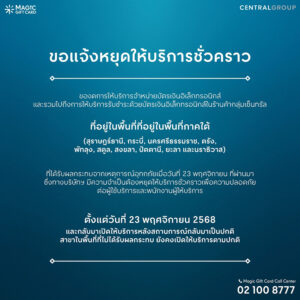 ซื้อบัตร Magic Gift Card ได้ที่จุดบริการลูกค้าสัมพันธ์ของ เซ็นทรัล, โรบินสัน, ท็อปส์ และ ท็อปส์ ฟู้ด ฮอลล์ ทุกสาขา
